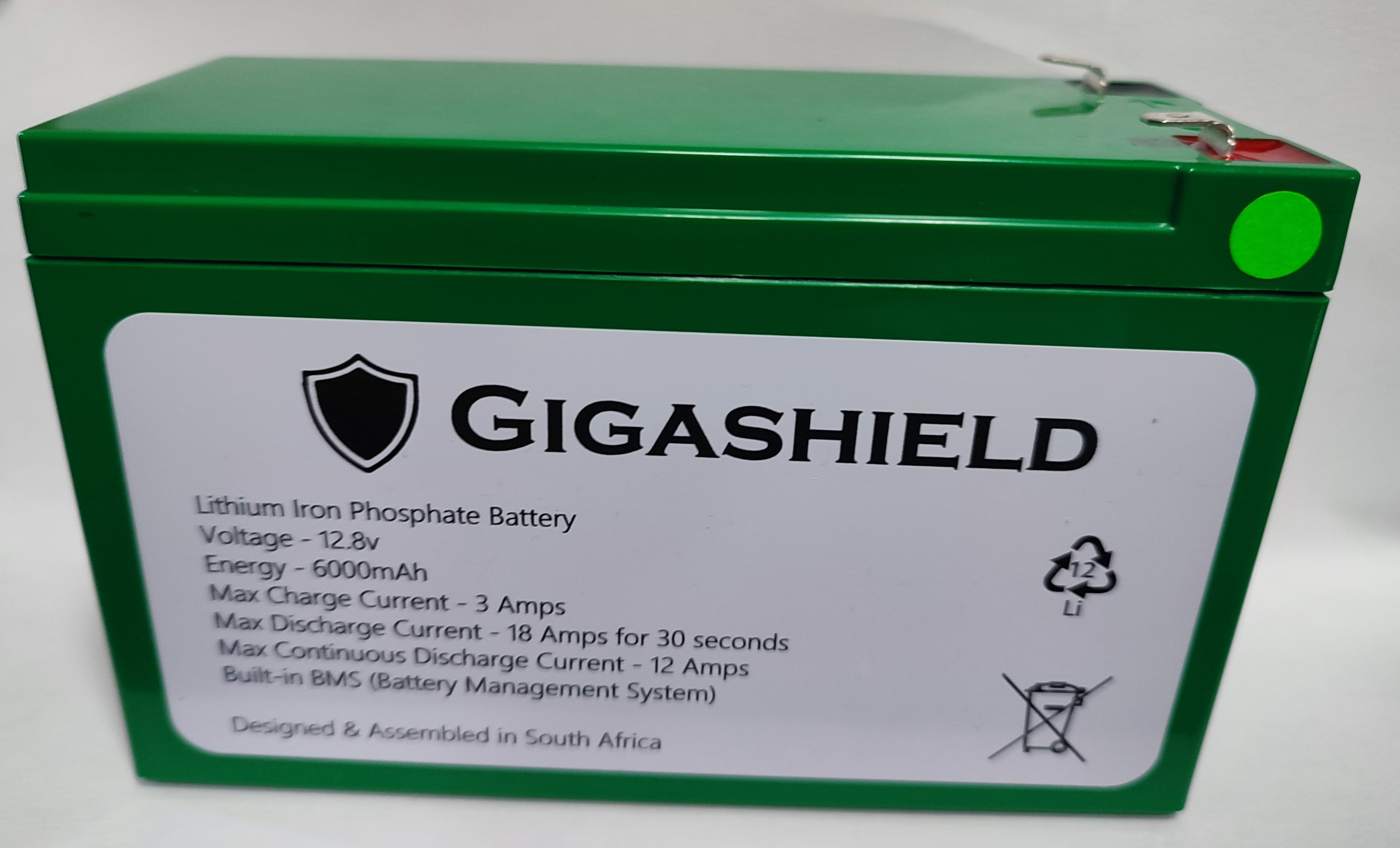 We collaborated with a local KZN manufacturer of robust and high quality Lithium Iron Phosphate batteries to produce our own Gigashield Branded 12.8V 6000mAh sealed lead acid replacement unit for most Alarms and automated gate units.